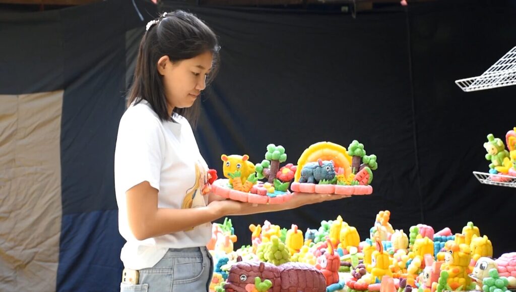 The “Moo Deng Krathong” has received the most pre-orders from customers. Each krathong takes less than 10 minutes to create and is made from fish food corn flour in various colors. They’re beautiful, biodegradable, and can serve as fish food.
