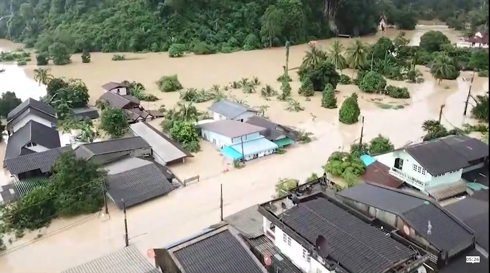 In Songkhla Province, residents are anxiously monitoring water levels in Hat Yai business district, with concern growing about potential urban flooding. Two main canals show rising water levels with nine communities currently on yellow alert. Several schools temporarily suspended classes.