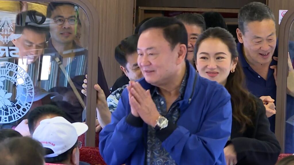 At Bang Bamru Station, her father Thaksin Shinawatra boarded the train, greeted warmly by Paetongtarn and Srettha. The trio, representing three generations of Pheu Thai leadership, exchanged embraces and posed for photos in a symbolic gesture of unity.
