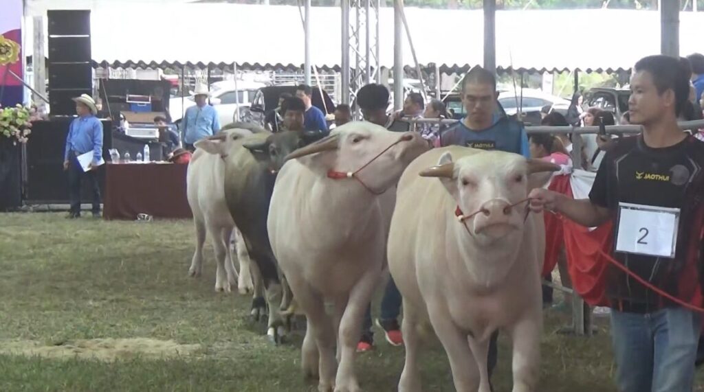 The event also drew attention to smaller breeds, such as the albino dwarf buffalo named Khao Moei. These animals are often prized for their unique appearance and gentle nature. -819 (TNA)