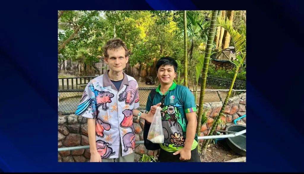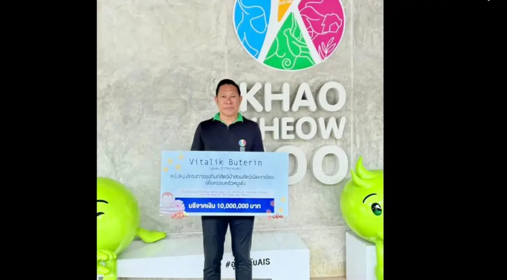 Yesterday (Dec 26), the “Kha Moo and the Gang” Facebook page posted a photo of Mr. Narongwit Chodchoi, Director of Khao Kheow Open Zoo, holding a sign stating that Vitalik Buterin, one of the most influential figures in the cryptocurrency world and co-founder of Ethereum, creator of the Ethereum (ETH) coin, has donated 10,000,000 baht to support the wildlife adoption project at Khao Kheow Open Zoo for the Moo Deng family.