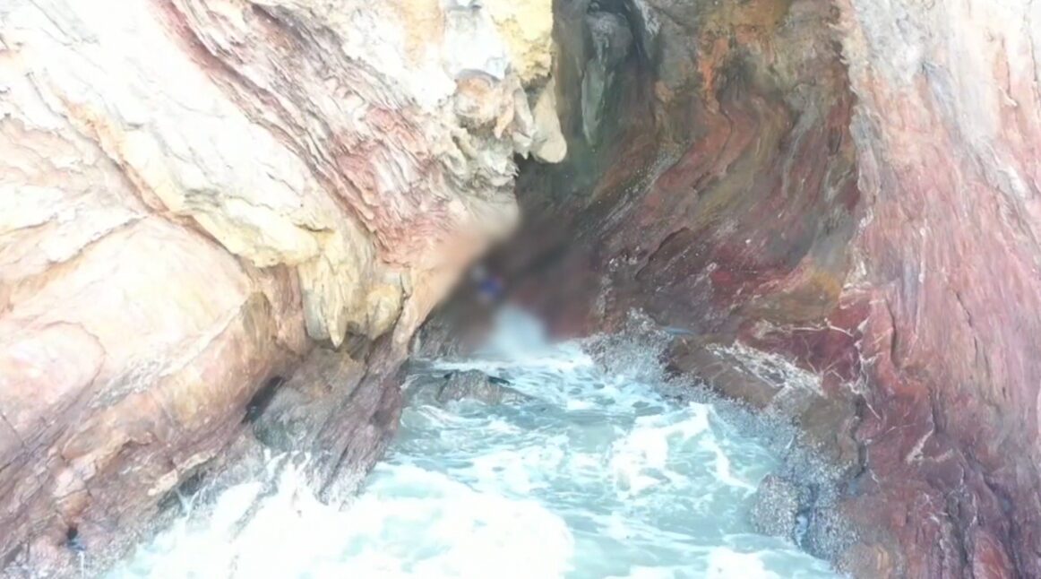 Rescue personnel waited for calmer seas before deploying a rubber boat to retrieve the body. Upon seeing Brendan’s body, his mother, partner, and friends were overcome with grief. -819 (TNA)