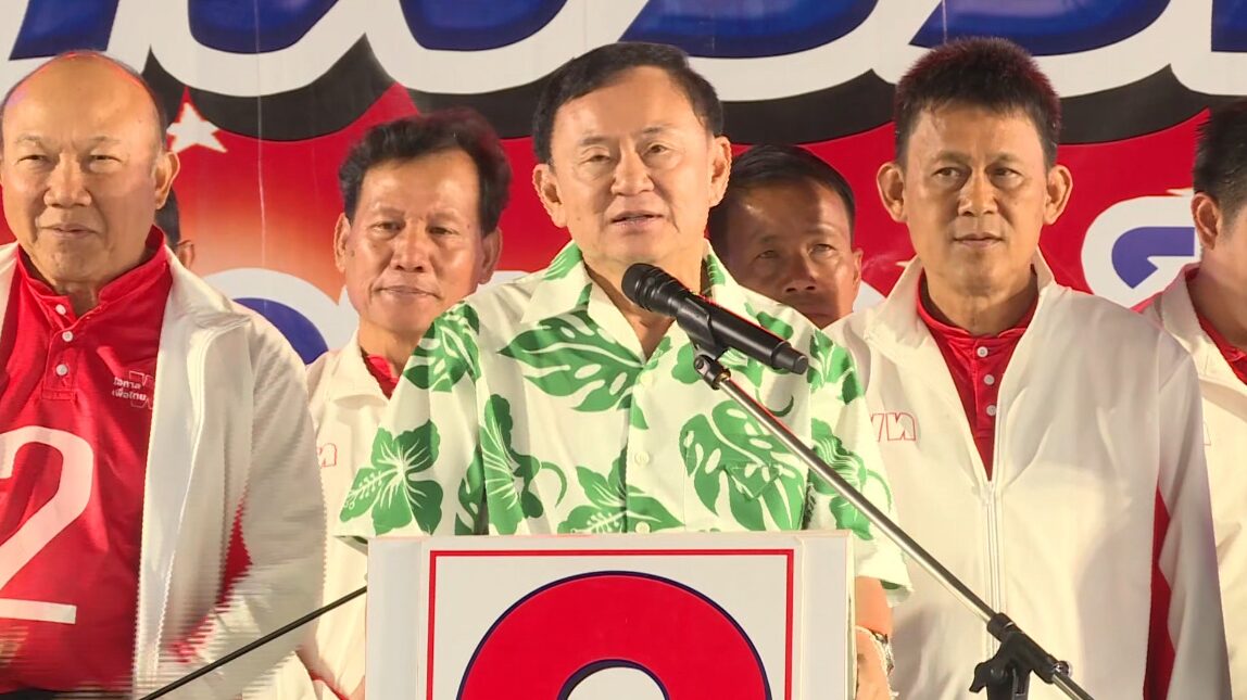 Former Prime Minister Thaksin Shinawatra, a campaign helper for the ruling Pheu Thai Party, Thursday morning was in Lamphun Province helping campaign for Anusorn Wongwan, a candidate for Lamphun PAO chief. Before his speech, he gave an interview expressing confidence that Pheu Thai Party candidates nationwide would win more than half the seats. He showed no concern about questions regarding his eligibility as a campaign helper potentially leading to yellow or orange cards for candidates.