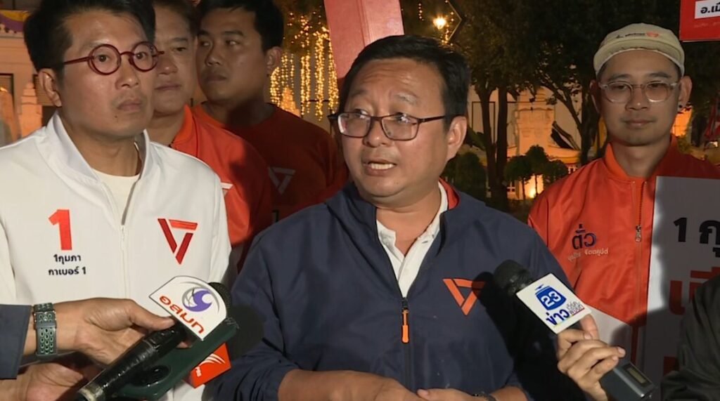 Meanwhile, the opposition People’s Party was also campaigning in Lamphun. Chaithawat Tulathon, ex-leader of the disbanded Move Forward Party leader, and Pannika Wanich, Progressive Movement spokesperson, as campaign helpers, supported Weeradej Phuphisit, their PAO chief candidate, and PAO member candidates at Pa Rok Fa Market in Pa Sang district, Lamphun.