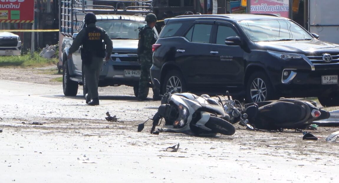The perpetrators planted an improvised explosive device in a garbage bin next to a guard post and detonated it when the police officers arrived,” said Police Colonel Kritsada Kaewchan, superintendent of Nong Chik Police Station.