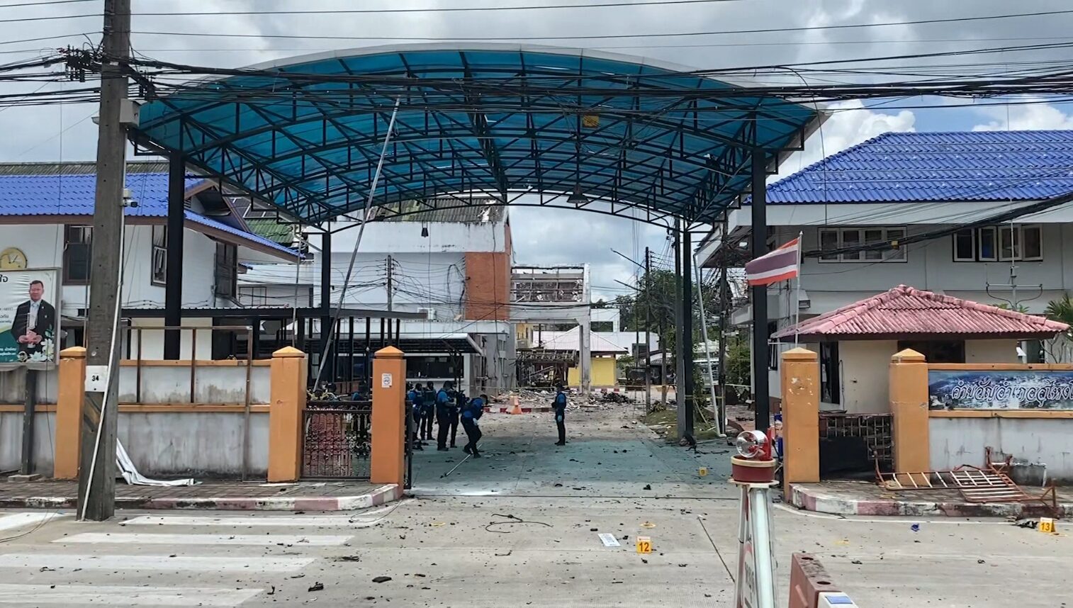 Extensive damage from the car bomb was reported to multiple buildings, including the district office’s assembly hall, tax office, second-floor meeting room, fire engine garage, and a National Housing Authority apartment building behind the district office.