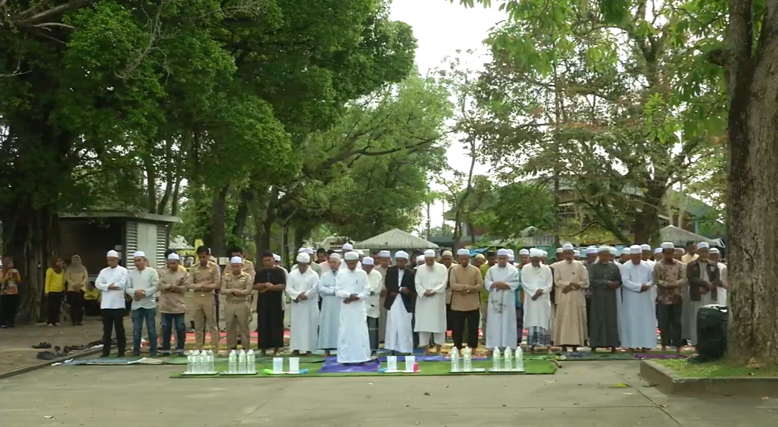 NARATHIWAT, March 10 (TNA) – On the first day of reopening the Sungai Kolok District Office in Narathiwat Province following Saturday night’s bombing, over 100 local Muslims gathered in front of the office to perform Hajat prayers, seeking blessings for peace in the area.
