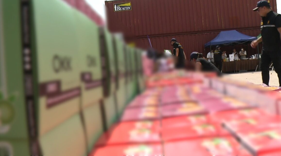 The operation began after the Customs Department received intelligence from the DSI about a large shipment of illegal goods transiting through Thailand to Myanmar.