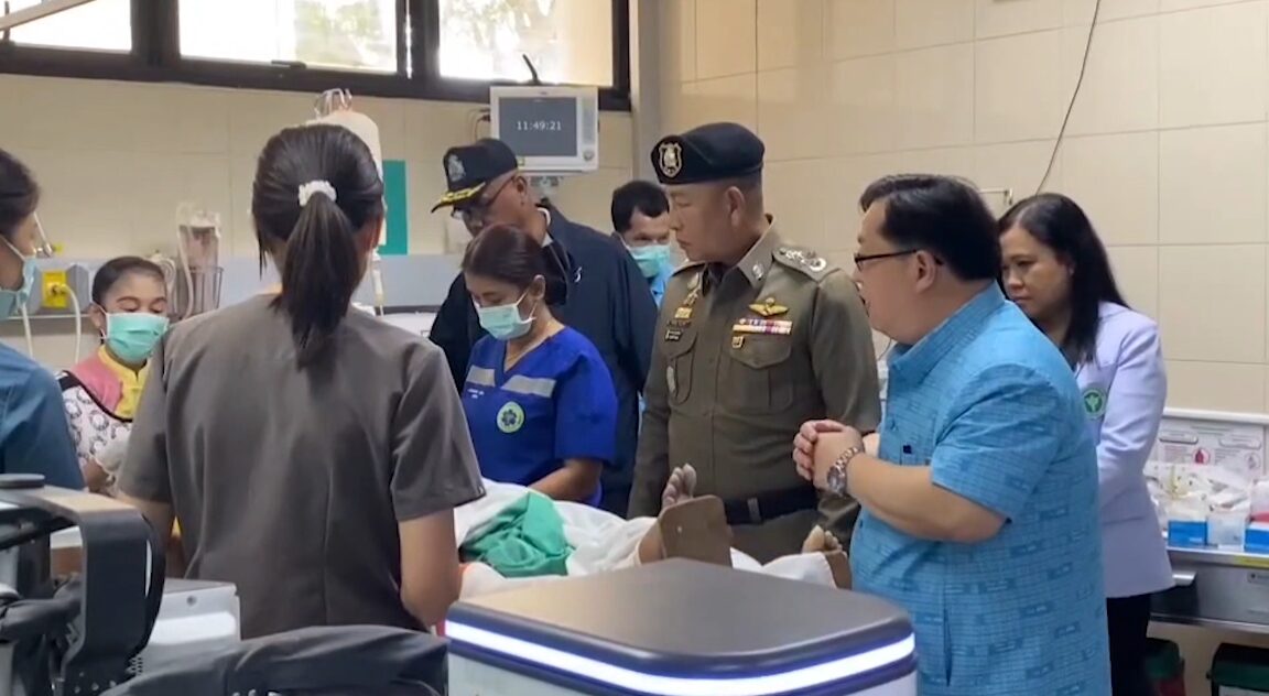 Chaturong suffered a fractured facial bone and had a chest tube inserted. Doctors found no sign of brain injury. Authorities are coordinating with the Police General Hospital for a potential transfer.