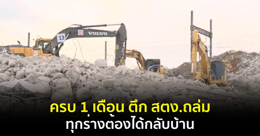 One month has passed, and the height of the rubble has decreased to 1.3 meters, a stark difference from the first day when the rubble was 26 meters high, equivalent to a 6-story building. As the rubble became lower, the number of fatalities increased. The Bangkok Metropolitan Administration (BMA) estimates that more than 30 people are still trapped inside the rubble.