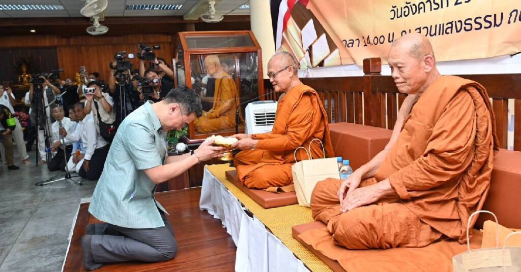 Bank of Thailand (BOT) Governor Sethaput Suthiwartnarueput on Wednesday received 10 kilograms of gold from the disciples, collected during the merit-making event honoring Luang Ta’s legacy.