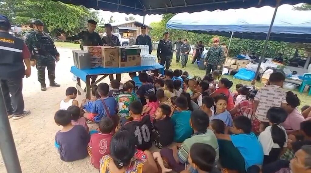 Thai soldiers are providing 24-hour security around the school premises. Meanwhile, authorities report that 509 Myanmar nationals have already crossed into Thailand seeking safety. -819 (TNA)