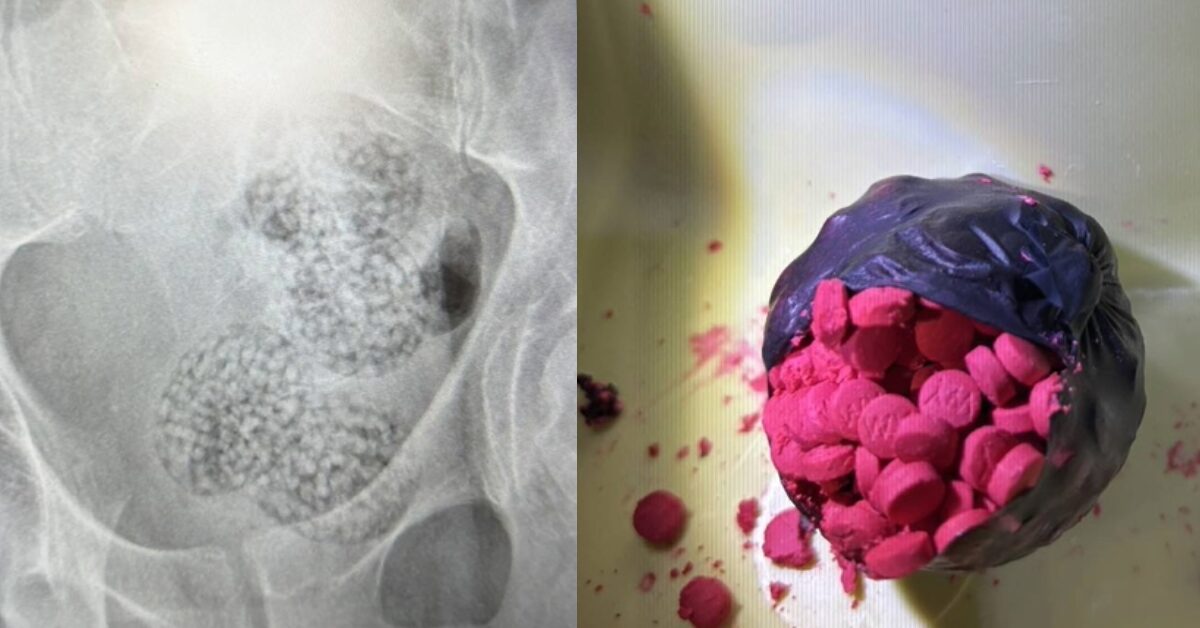 Authorities suspect the man had swallowed the drug packets, and one or more of them ruptured inside his digestive system, leading to his severe medical symptoms. At the time of the discovery, he was still unconscious and was awaiting surgery. – 819 (TNA)