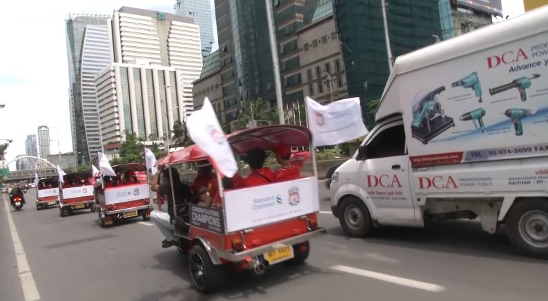 BANGKOK, July 31 (TNA) – Liverpool F.C. fans on Friday joined a ‘tuk-tuk’ parade in Bangkok to celebrate the club’s first Premier League title.