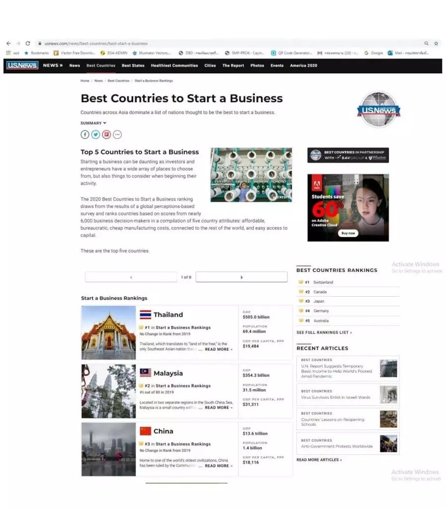 Wuthikrai Leeviraphan, director-general of the department, said that recently U.S.News & World Report (www.usnews.com/news/best-countries/best-start-a-business) posted its list of “Best Countries to Start a Business 2020” and Thailand ranked first for the second year in a row because it took only six days and five procedures to start a business in the country.