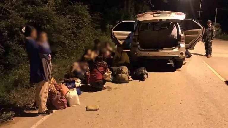 At 5am officials stopped a grey Toyota Fortuner vehicle registered in Bangkok, in Ban Kaeo Pet Ploy village of Ta Phraya sub-district. Three Cambodian men and five female compatriots were on the vehicle.