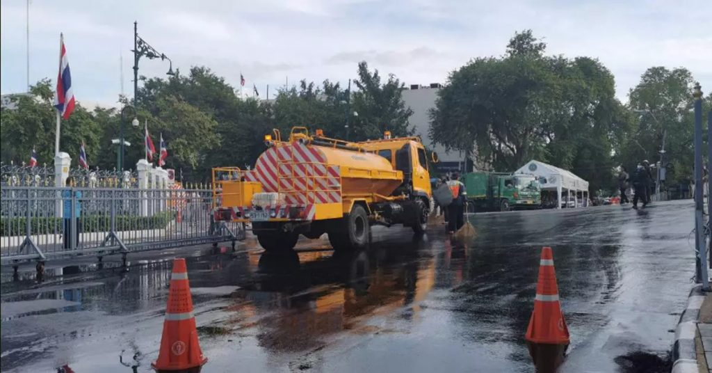 BANGKOK, Oct 15 (TNA) – The areas around Government House have been cleared for traffic and cleaned by city workers after the anti-government demonstration ended on Thursday.