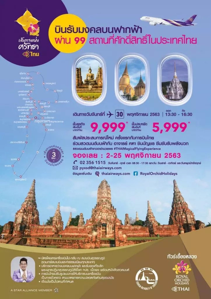 Besides, THAI will operate special flights over 99 sacred places in 31 provinces for customers to make merits on Nov 30. The flight will take off at Suvarnabhumi airport at 1.30pm and take about three hours. Minimum fares were set at 5,999 baht for the economy class and 9,999 baht for the business class. (TNA)