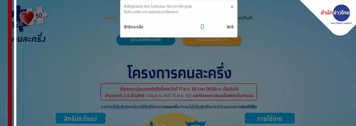 BANGKOK, Nov 11 (TNA) – About 2.4 million people have registered for the second round of the co-payment scheme, claiming all available rights just a few hours after the reopening of the online registration.