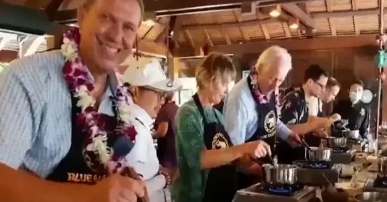 They later went to Blue Elephant restaurant where they were welcomed by Phuket governor Narong Wunsiew and attended a cooking class to make local delicacies.