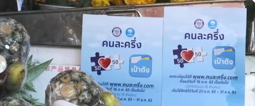 The co-payment scheme allows registered individuals to pay only half the price for their purchases at small shops and food vendors while the government will subsidise the other 50 per cent, capped at 150 baht per day.