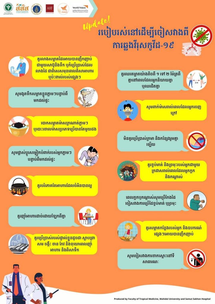 Many organizations including Samut Sakhon Hospital, the Public Health Ministry and the Thai Health Promotion Foundation produced communication materials in Thai, English, Myanmar, Cambodian and Lao languages to inform people of methods to protect themselves from COVID-19. (TNA)
