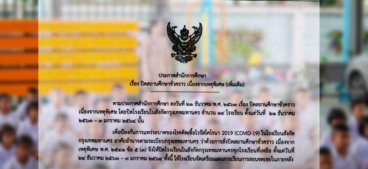 BMA spokesman, Pongsakorn Kwanmuang said the BMA decided to close schools to prevent the fresh round of the outbreak, which could possibly be five times worse than that in the previous round.