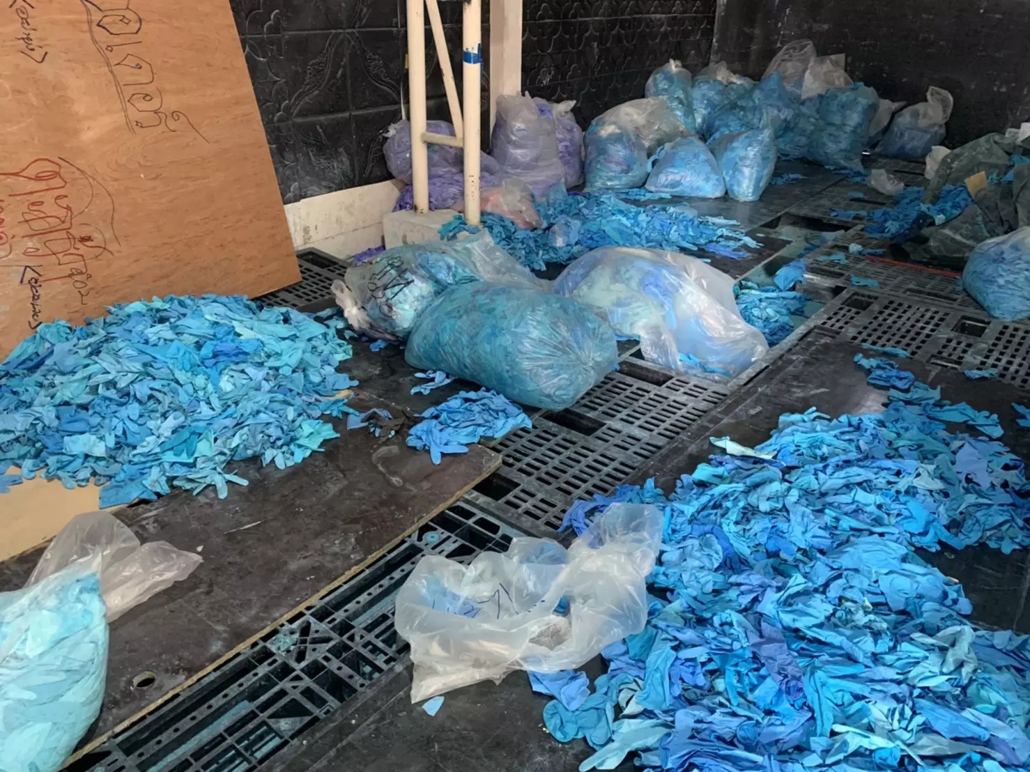 The raid happened at house in Lat Phrao area. There officials found blue rubber gloves, blowers, production equipment and cardboard boxes bearing texts reading gloves for medical examination.