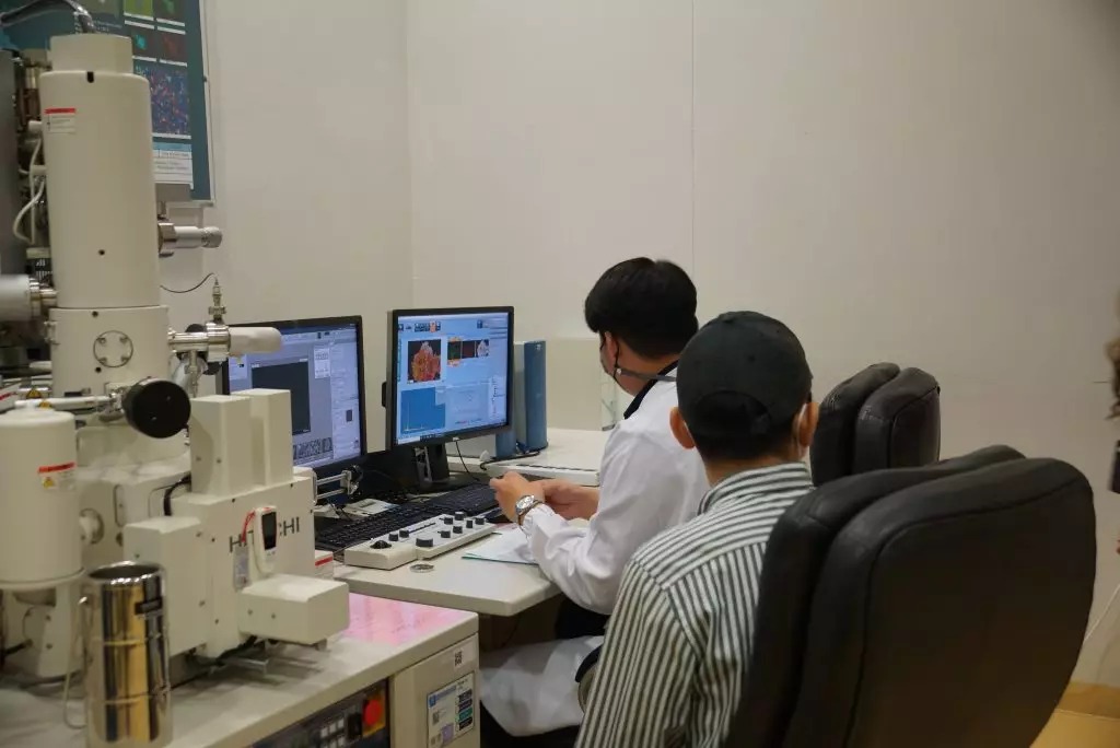 Suchart Traisangrujira, adviser to the industry minister, and executives of the ministry inspected the laboratory of the National Science and Technology Development Agency (NSTDA).