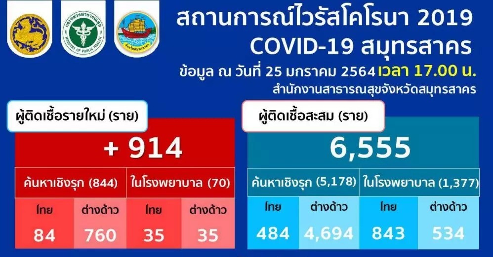 SAMUT SAKHON, Jan 26 (TNA) – Samut Sakhon province yesterday reported 914 new cases, mostly detected in active case finding.