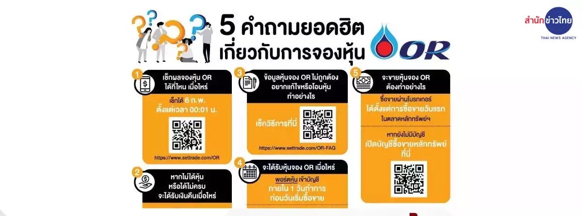 BANGKOK, Feb 5 (TNA) – Individual investors will know tomorrow (Feb 6) who acquire shares from the initial public offering of PTT Oil and Retail Business Plc (OR).