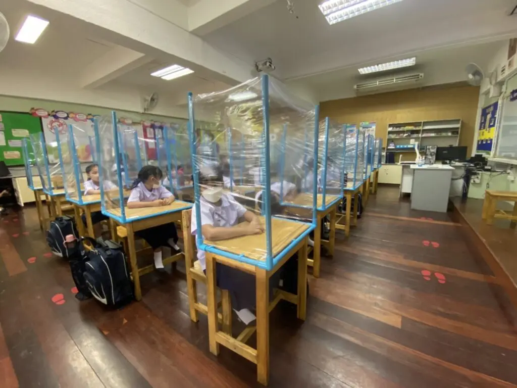Suphat Jampatong, permanent secretary for education, said all schools were readied for the new term which was different from the previous term as students’ seats were set 1 meter apart instead of 1.5m apart. Air-conditioned classrooms must be naturally ventilated during their breaks every two hours.