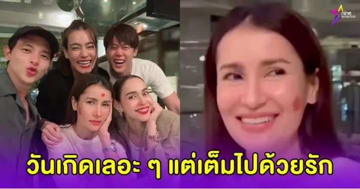ไนน์เอ็นเตอร์เทน 1 พ.ย. – ทำเอาแฟน ๆ ใจฟูไปกับความน่ารักอบอุ่น หลังนักร้องนักแสดงมากฝีมือ “นัท มีเรีย” แท็กทีมผู้บริหารช่อง 3 “ดิว ปิ่นกมล” และเพื่อนพี่น้องนักแสดงคนสนิท ร่วมกันทำเซอร์ไพรส์วันเกิดล่วงหน้าให้กับเพื่อนซี้ นางเอกซุปตาร์ “แอน ทองประสม” ด้วยการนัด “แอน” ไปทานอาหารค่ำด้วยกัน ตามมาด้วยการยกเค้กมาเซอร์ไพรส์ ก่อนที่ทุกคนจะเอาลิปสติกสีแดงมาทาที่ปาก ทยอยเข้ามา Kiss เบา ๆ เพื่อบอกรัก “แอน”