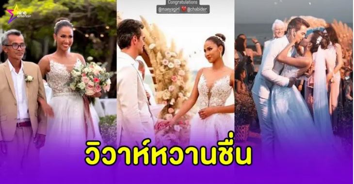 ไนน์เอ็นเตอร์เทน 24 เม.ย. –อบอวลไปด้วยความรัก “เมญ่า” สละโสดรอบ 2 ควง “ชาบี้” แฟนหนุ่มชาวต่างชาติ เข้าพิธีวิวาห์ริมทะเล