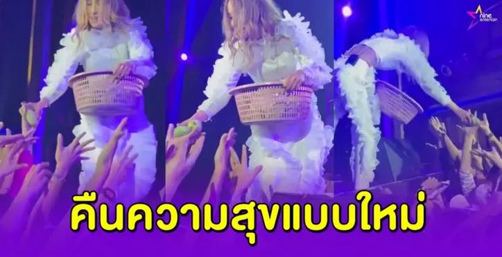 ล่าสุดนักร้องสาวขอตอบแทนแฟน ๆ คืนบ้าง โดยนำมะม่วงปลูกเองที่บ้าน มาแจกให้แฟนเพลงหน้าเวที