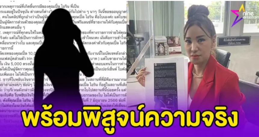ไนน์เอนเตอร์เทน 10 มิ.ย.-กรณีนักร้องสาว “เปิ้ล ไอริณ” พร้อมทนายความส่วนตัว เข้าแจ้งความที่ สภ.ปากคลองรังสิต จ.ปทุมธานี ดำเนินคดีกับ อดีต ผจก.ส่วนตัว ข้อหาลักทรัพย์ และทีวีช่องดังข้อหานำสื่อบางตอนในรายการอันมีข้อความที่ทำให้เกิดการเข้าใจผิดและการหมิ่นประมาท รวมทั้งฟ้องผู้ให้ความเห็นที่หมิ่นประมาทรวม 3 เพจ ที่ก่อให้เกิดการเข้าใจผิดในโลกโซเชียล