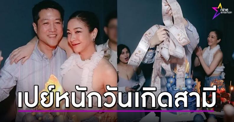 ไนน์เอ็นเตอร์เทน 23 ต.ค. –สวยด้วยเปย์ด้วย “แป้ง อรจิรา” เซอร์ไพรส์วันเกิดสามี เค้กก้อนพิเศษ ดึงเงินออกมายาวเหยียด