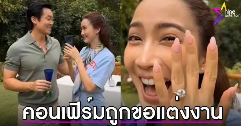 ไนน์เอ็นเตอร์เทน 29 มิ.ย. -เฮลั่น! นางเอกสาว “แต้ว ณฐพร” ถูกแฟนหนุ่ม “ณัย ประณัย” ขอแต่งงานแล้ว โดยมีไฮโซพก พี่ชายของ หนุ่มณัย เป็นสักขีพยานรักในครั้งนี้