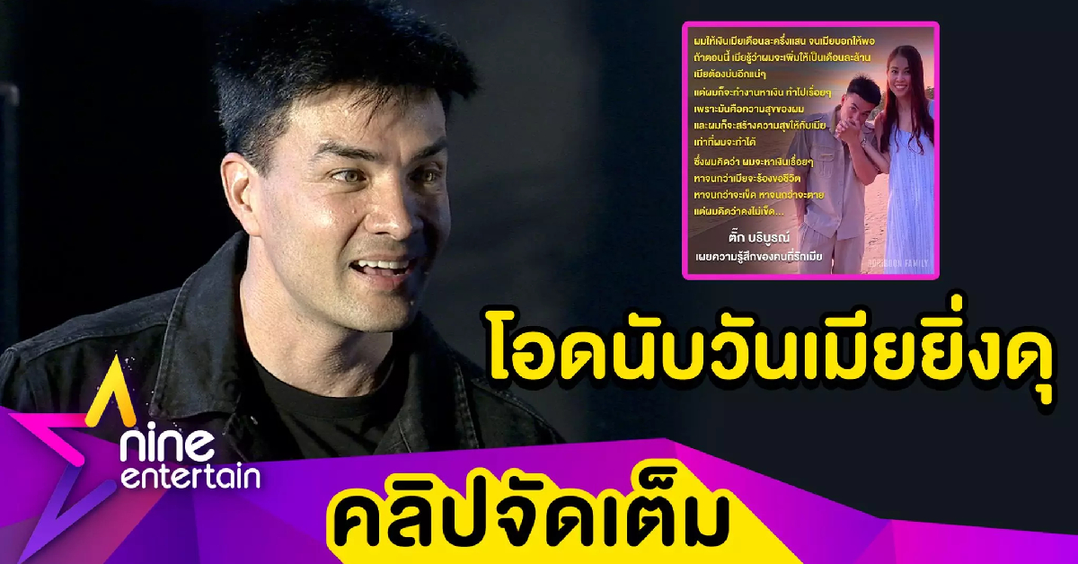 ไนน์เอ็นเตอร์เทน 6 เม.ย. – “ตั๊ก บริบูรณ์” ตอบแล้วเปย์เมียเดือนละล้านจริงไหม? เล่าฮาสาเหตุทำเมียดุขึ้นทุกวัน.