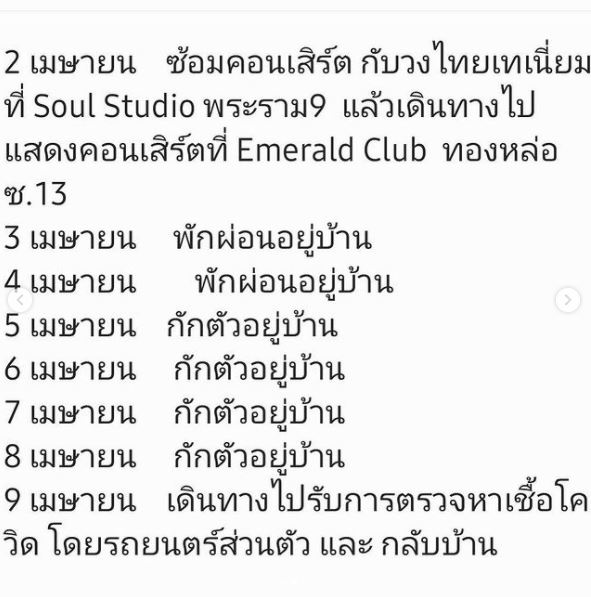โดยขันเงินได้ระบุด้วยว่า “อยากให้ทุกคนมีสติและช่วยกันเฝ้าระวังนะครับเพราะหลังจาก 15 วัน ก็ยังสามารถพบเชื้อได้” โดยก่อนหน้านี้ “เวย์ ไทยเทเนียม” สมาชิกวงเดียวกันได้แจ้งว่าติดเชื้อโควิด-19 ไปแล้ว.-สำนักข่าวไทย