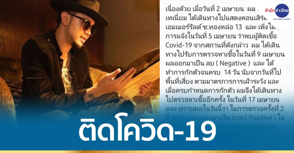 กรุงเทพฯ 18 เม.ย.-ตรวจรอบ 2 ผลเป็นบวก “ขันเงิน ไทยเทเนียม” นักร้องชื่อดัง โพสต์ไอจี ติดโควิด-19 จากคลัสเตอร์ทองหล่อ หลังแสดงคอนเสิร์ตที่ผับดัง