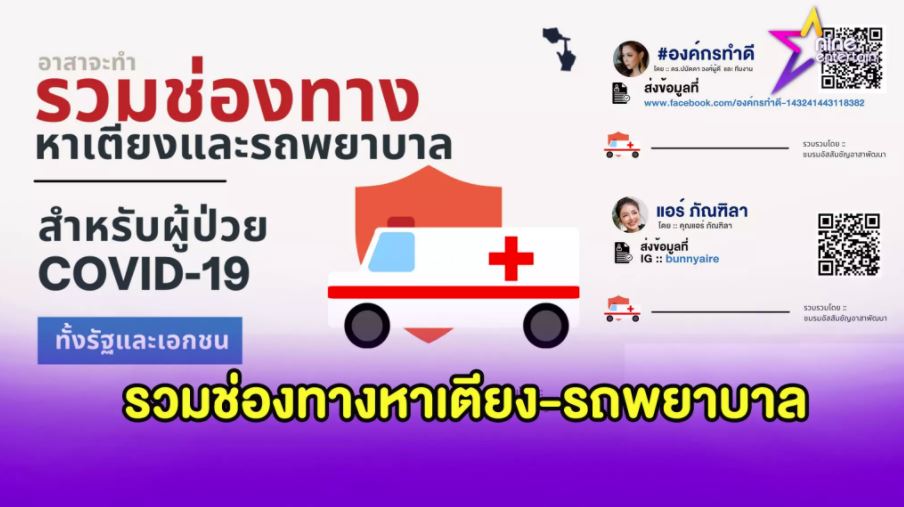 รวมทั้งเหล่าดาราที่เป็นกระบอกเสียงอย่างประธานองค์กรทำดี “ดร.บุ๋ม ปนัดดา” และสาว “แอร์ ภัรฑิลา” ที่ออกมาโพสต์ช่องทางการติดต่อเพื่อช่วยเหลือผู้ป่วยโควิดเช่นกัน และยังมีเพจต่าง ๆ ทั้งโรงพยาบาล หน่วยงานอีกหลายหน่วยงานที่พร้อมใจกันช่วยเหลืออย่างเต็มที่.