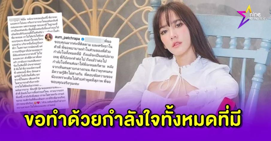 ไนน์เอ็นเตอร์เทน 22 ก.ค. – “อั้ม” พูดแล้ว ขอทำด้วยใจทั้งหมดที่มี แม้เป็นปลายเหตุ หลังแฟนคลับขอให้คอลเอาท์