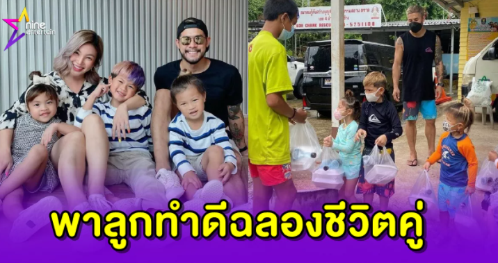 ล่าสุดทั้งคู่ พาเด็ก ๆ มาแจกข้าวและน้ำ 100 ชุด เพื่อเริ่มวันดี ๆ ของครอบครัว