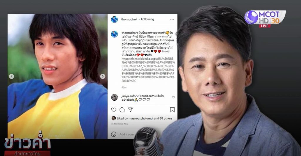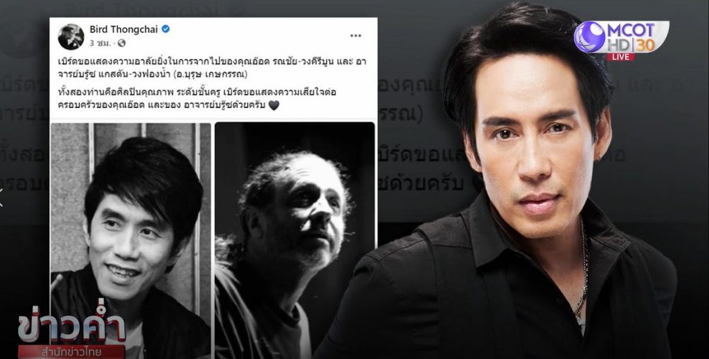 เบิร์ด-ธงไชย แมคอินไตย์ ศิลปินชื่อดัง โพสต์เฟซบุ๊กในเพจ Bird Thongchai เพื่อไว้อาลัยต่อการจากไปของ อ๊อด คีรีบูน หรือนายรณชัย ถมยาปริวัฒน์ ศิลปินชื่อดัง กับ อ.บุรุษ เกษกรรณ หรือบรูซ แกสตัน ศิลปินแห่งวงฟองน้ำ ที่จากไปในวันนี้พร้อมๆ กัน