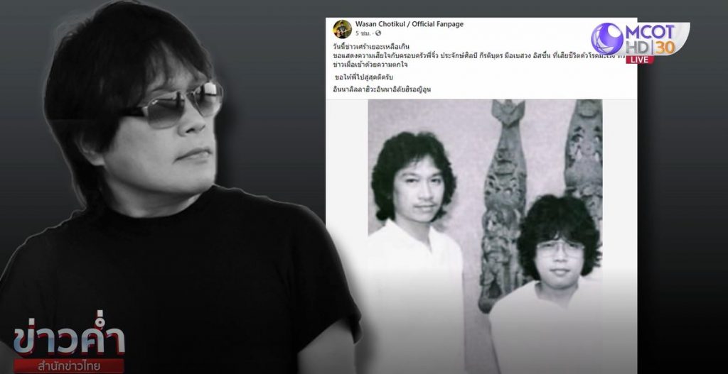 นอกจากนี้คนในวงการเพลงอีกท่านหนึ่งที่เสียชีวิตวันนี้ โดยเฟซบุ๊กของคุณวสันต์ โชติกุล มีข้อความว่า