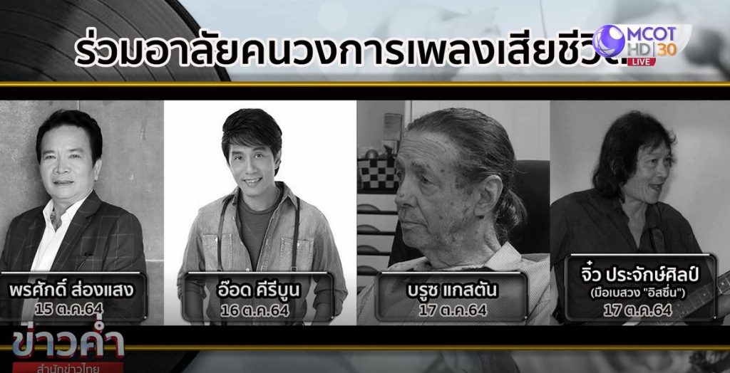 เบิร์ด-ธงไชย เผยแพร่ข้อความว่า “เบิร์ดขอแสดงความอาลัยยิ่งในการจากไปของคุณอ๊อด รณชัย-วงคีรีบูน และอาจารย์บรูซ แกสตัน-วงฟองน้ำ (อ.บุรุษ เกษกรรณ) ทั้งสองท่านคือศิลปินคุณภาพ ระดับชั้นครู เบิร์ดขอแสดงความเสียใจต่อครอบครัวของคุณอ๊อด และของอาจารย์บรูซด้วยครับ”