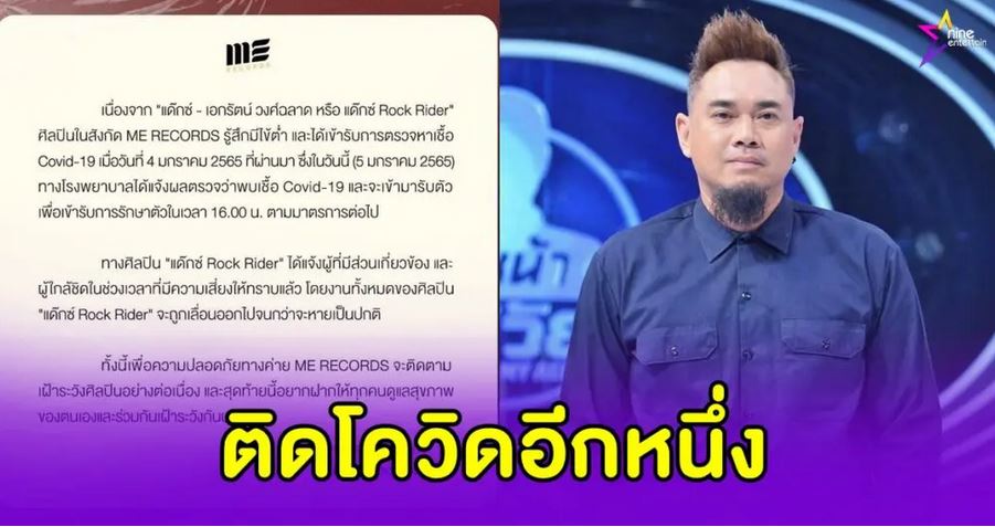 ไนน์เอ็นเตอร์เทน 5 ม.ค. -โควิด-19 กลับมาระบาดอีกระลอก คนบันเทิงหลายคนก็ทยอยติดเชื้อ ล่าสุดค่าย Merecords ต้นสังกัดของนักร้องหนุ่ม “แด๊กซ์ เอกรัตน์” หรือ “แด๊กซ์ Rock Rider” โพสต์แจ้งข่าวว่านักร้องคนดังติดเชื้อโควิด-19 หลังเจ้าตัวรู้สึกมีไข้ต่ำ และได้เข้ารับการตรวจหาเชื้อ Covid-19 กระทั่งพบเชื้อในที่สุด
