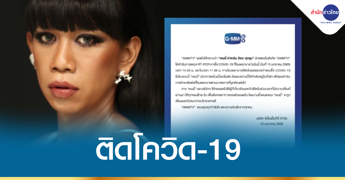 กรุงเทพฯ 15 ม.ค. – GMMTV แจ้งข่าวผลตรวจ RT-PCR ของ “เจนนี่ ปาหนัน” นักแสดงในสังกัด พบติดเชื้อโควิด-19 ระหว่างนี้ได้กักตัวอยู่ในที่พัก เพื่อรอเข้ารับการรักษาต่อที่ รพ.