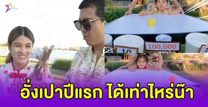 “ป๊อก” ได้เตรียมซองอั่งเปาจำนวน 4 ซอง ที่ใส่เงินจำนวน 10 บาท /100 บาท/ 10,000 บาท และ 100,000 บาท ไว้ให้ลูก ๆ แต่มีกติกาว่าลูก ๆ ต้องกลิ้งลูกปิงปองลงกล่องที่ระบุตัวเลขจำนวนเงินไว้ กลิ้งลูกกล่องไหนได้เงินตามจำนวนนั้น กว่าจะได้อั่งเปาจากพ่อป๊อก น้องมีก้าและน้องมีญ่า ถึงกับต้องปาดเหงื่อ.